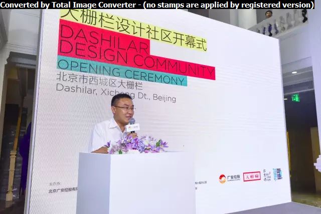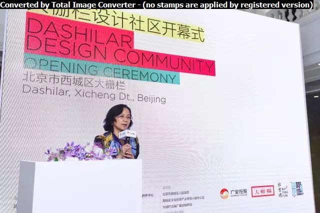 一年一度的國際設計周作為北京最具影響力的大型文化活動之一,今年再一次選擇與大柵欄更新計劃合作,作為設計周主辦方代表,北京歌華文化發(fā)展集團副總經(jīng)理、設計周組委會辦公室副主任陳工女士表達了對大柵欄設計社區(qū)過去幾年工作的肯定以及對今年活動的期望與祝愿。