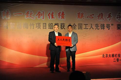 2016年10月20日,北京大柵欄投資有限責(zé)任公司楊梅竹項(xiàng)目組榮獲中華全國(guó)總工會(huì)頒發(fā)的“全國(guó)工人先鋒號(hào)”榮譽(yù)稱(chēng)號(hào)的全員會(huì)議成功舉行。北京廣安控股有限公司領(lǐng)導(dǎo)班子以及北京大柵欄投資有限責(zé)任公司及下屬子公司全體員工參加了會(huì)議。